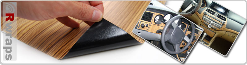 Wood grain vinyl wrap kits come in burlwood, cherry, birch, blackwood, mahogany, maple, olive, rosewood, snakewood, walnut, zebrano and oak and are perfect for automotive and architectural applications.
